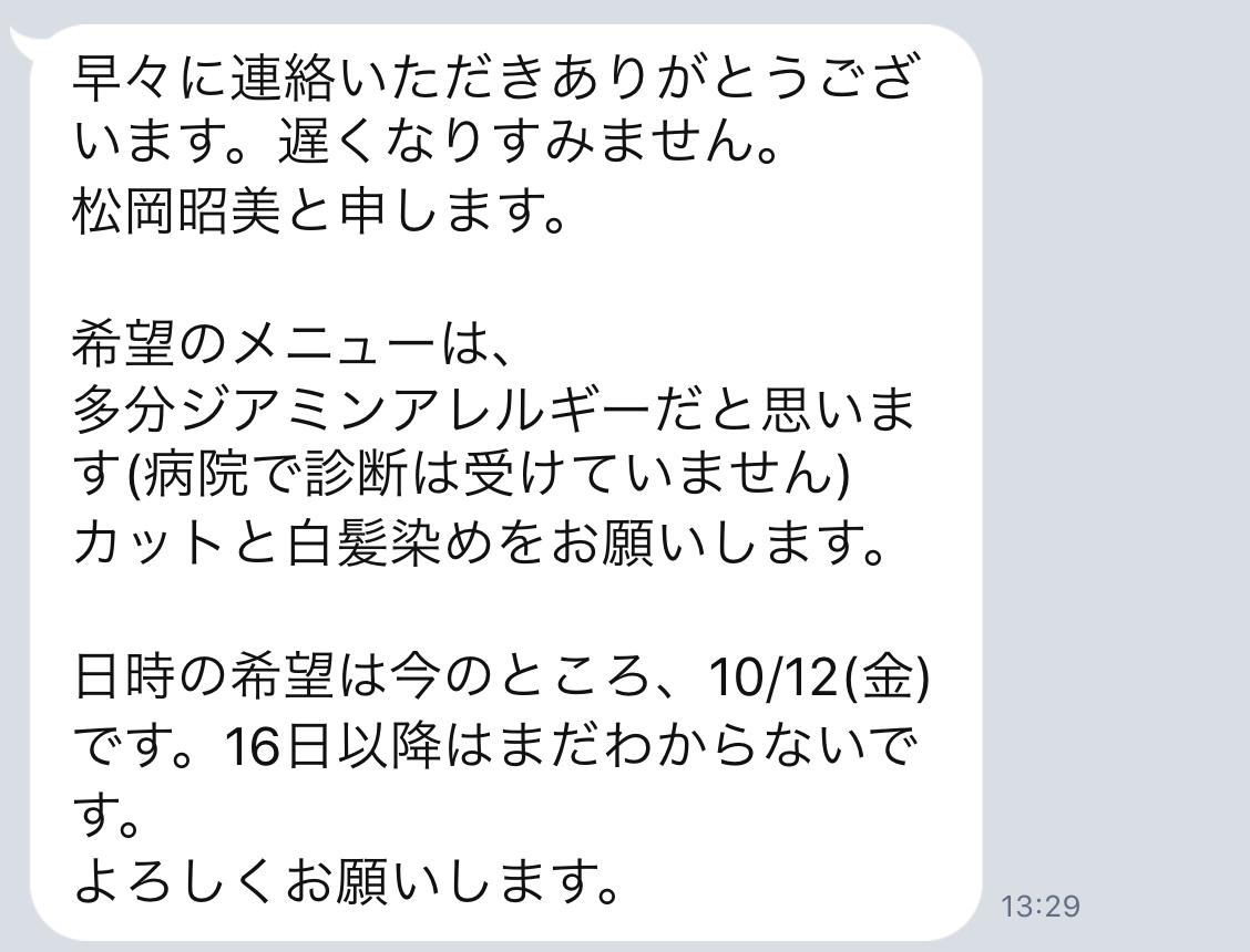 本日はジアミンアレルギーのアナフィラキシーショックを経験されたお客様からのご相談を紹介していきます。