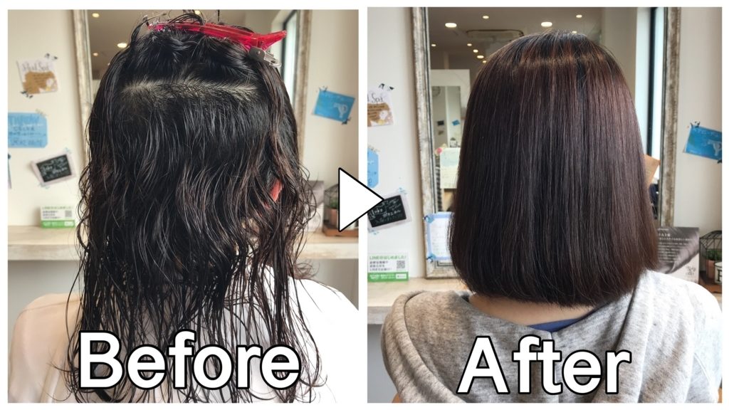 髪質改善はトリートメントという認識ですが、癖が伸びる髪質改善はトリートメントではありません。縮毛矯正です。